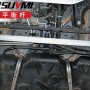 中下支撑杆,设计位于车辆底盘中部,链接着油箱前方左右两侧纵梁,用于加固车辆油箱中部车体结构刚性强度,减轻油箱负重波动,增强车辆乘客载重能力,降低车架晃动,防止变形扭曲,提升车辆崎岖不平路面平稳性以及高速、弯道操控稳定性。