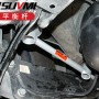 后下左右支撑杆,设计位于车辆后梁上,链接着后梁与纵摆臂固定螺栓上,担当着纵摆臂助手的角色,加固车辆后梁前方支撑力,减轻后梁晃动率,增强车辆崎岖不平路面平稳性以及高速、弯道操控稳定性。