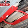 中下支撑架设计位于排气管凹槽中段(前排座椅下方),链接着凹槽两侧纵梁上,形式一个封口结构,用于加固车辆凹槽中段两侧链接结构强度,增强车辆前排乘客载重能力,减轻车架晃动,防止车身变形扭曲,提升车辆崎岖不平路面平稳性以及高速、弯道操控稳定性。