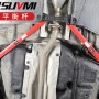 中下左右支撑杆设计位于排气管凹槽位油箱两侧(后排座椅下方),跨接中间横拉杆与侧边纵梁上,形成一个V字支撑结构,用于加固车辆油箱凹槽整体结构刚性强度,减轻油箱液体负重波动,增强车辆后排乘客载重能力,降低车架晃动,防止变形扭曲,提升车辆崎岖不平路面平稳性以及高速、弯道操控稳定性。