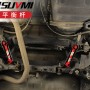 后梁左右挂臂,设计位于车辆底盘后梁中部上,链接着后梁原车V字支撑杆上,用于巩固车辆后梁主/副梁连接结构钢性强度,减轻后梁晃动量,增强车辆载重量,提升车辆崎岖不平路面平稳性以及高速、弯道操控稳定性。