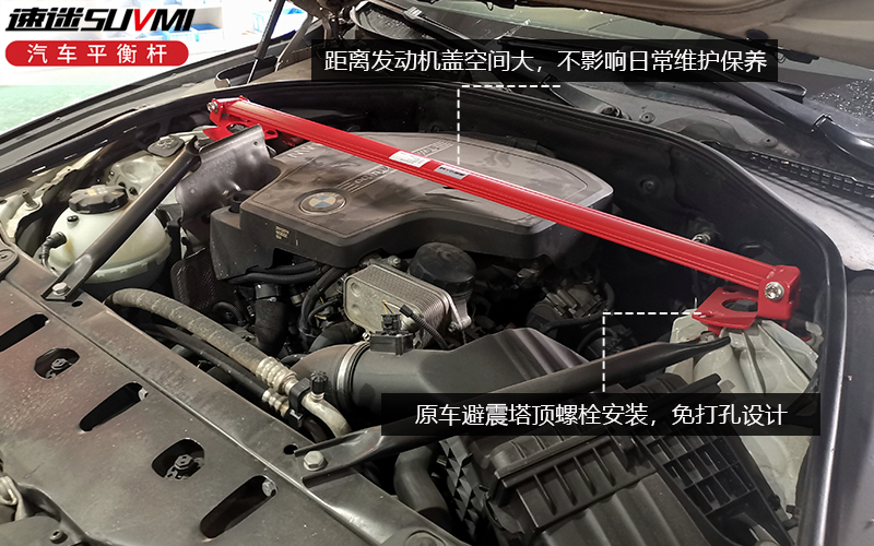 宝马5系安装SUVMI速迷车身加固件后,车辆底盘前-中-后全面得到进一步的强化加固,有效抑制车身扭曲,减轻弯道倾斜,增强操控灵敏度,提升行车安全稳定性能,速迷SUVMI给您带来非凡的驾驶体验。