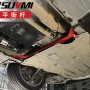 前下拉杆设计位于前梁后方,链接着前段两侧纵梁上,用于加固车辆前段链接结构钢性强度,减轻前梁晃动率,抵消变速器震动,增强车辆崎岖不平路面平稳性以及高速、弯道操控稳定性。