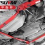 加强型扁担设计位于底盘油箱处(后排座椅下方),链接着油箱两侧纵梁与后梁加强板,用于加固车辆油箱两侧整体结构刚性强度,减轻油箱负重波动,增强车辆后排乘客载重能力,降低车架晃动,防止变形扭曲,提升车辆崎岖不平路面平稳性以及高速、弯道操控稳定性。