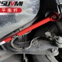 后下左右支撑杆,设计位于车辆后梁上,链接着后梁与纵摆臂固定螺栓上,担当着纵摆臂助手的角色,加固车辆后梁前方支撑力,减轻后梁晃动率,增强车辆崎岖不平路面平稳性以及弯道操控稳定性。