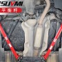 后下左右支撑杆设计位于油箱凹槽两侧(后排座椅下方),跨接中间横拉杆与侧边纵梁上,形成一个V字支撑结构,用于加固车辆油箱凹槽整体结构刚性强度,衰减油箱液体负重波动,增强车辆后排乘客载重能力,降低车架晃动量,防止车身变形扭曲,提升车辆崎岖不平路面平稳性以及高速、弯道操控稳定性。